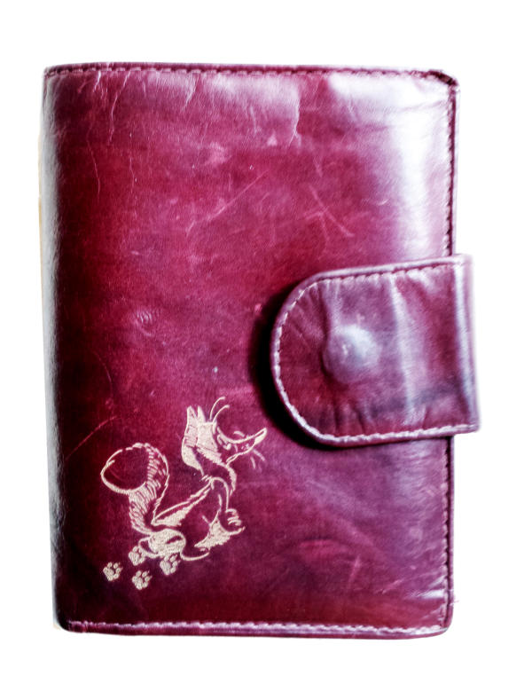 Schriftzüge und Designs in das Leder eingebrannt.